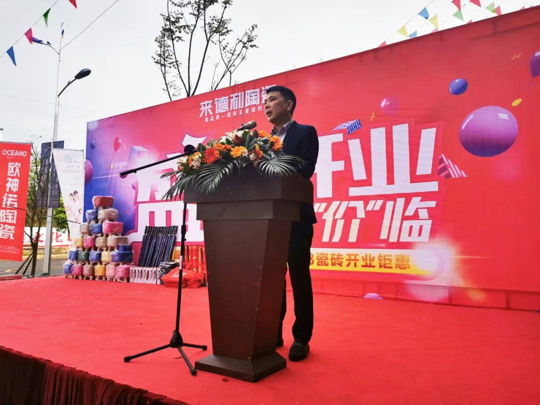 东道主东安来德利总经理张磊先生首先对到场的各位总部领导、来宾们以及业主们表示热烈的欢迎以及衷心的感谢,表达了来德利陶瓷在东安做大,做强的决心,并表示来德利陶瓷会继续以优质的产品,贴心地服务好每一位客户,力求让广大消费者享受到最优质的产品与服务!