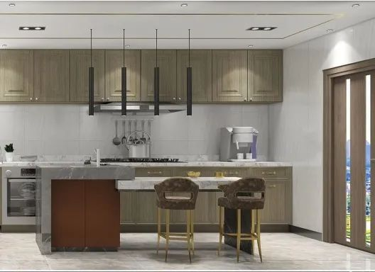开放式厨房作为主人翁表达新生活的重要空间之一,将吧台与就餐区融为一体,温润的木元素、减弱高冷的用色、精致桌椅等巧妙搭配设计,使得生活里的“柴米油盐”呈现更多样化。