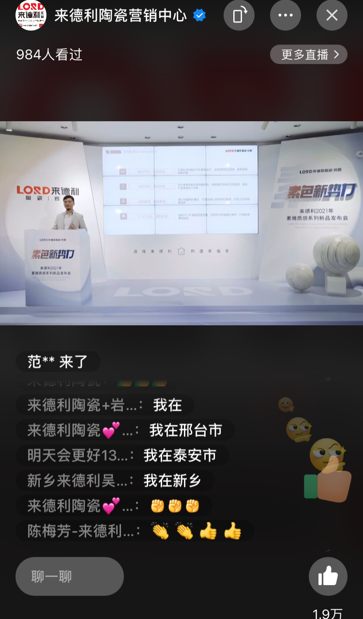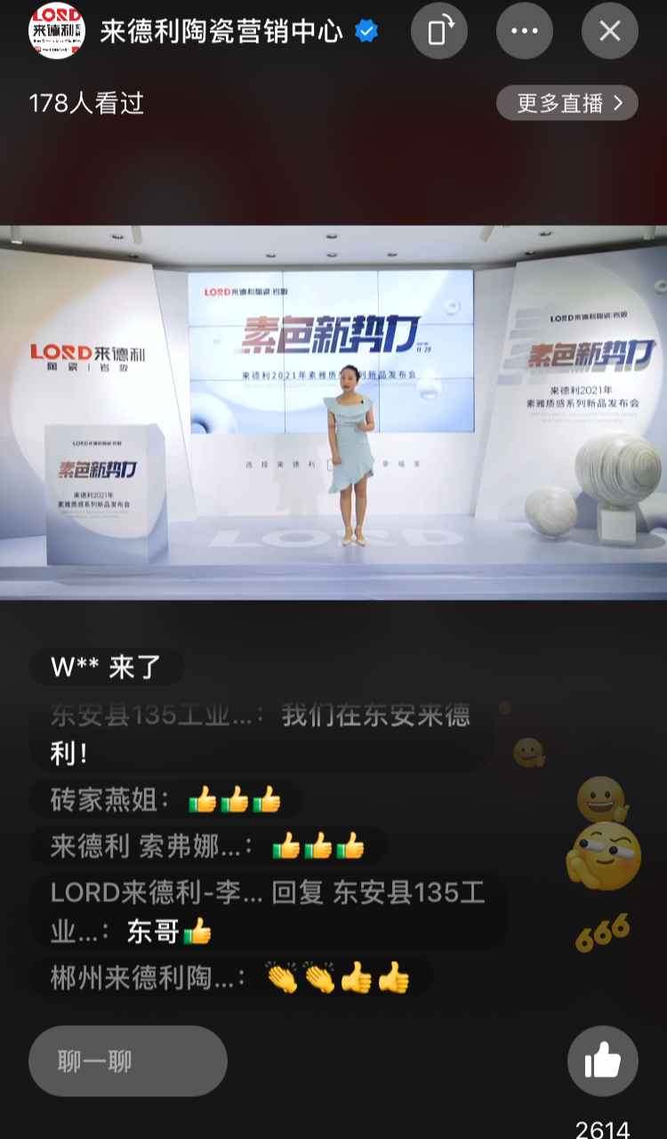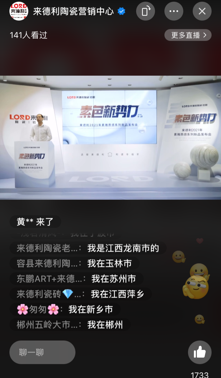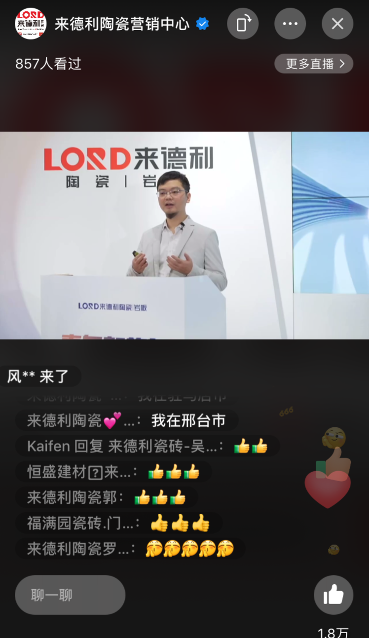 来德利品牌总经理孔庆升亲临发布会直播间,与来自全国各地的家人们亲切问候,并表示来德利为进一步丰富现有产品体系,强化品牌竞争实力将不遗余力,而重磅发布【素雅质感系列】质感新作,将为其打通零售渠道、设计渠道、整装等多元渠道,征战市场作出战略性部署。