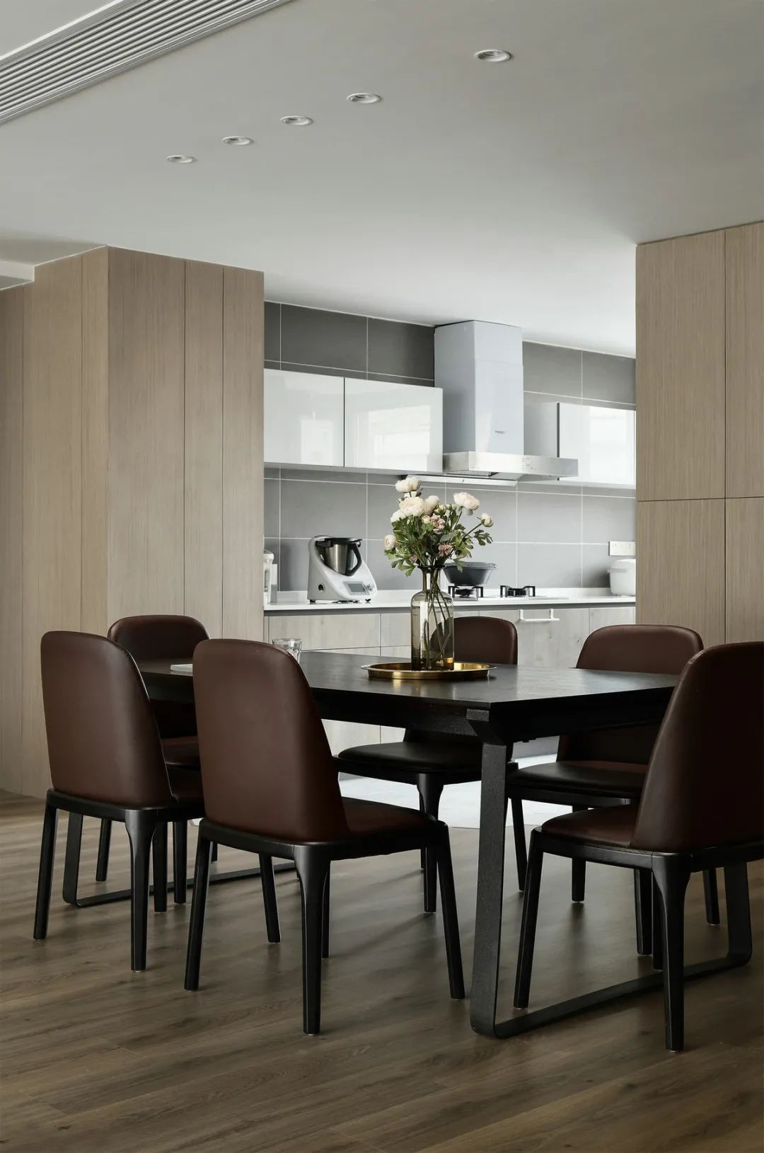 现代设计注重场景与人的互动性,刻意划破区域的局限性,采用高级感的纹理岩板映衬立面背景,使得空间