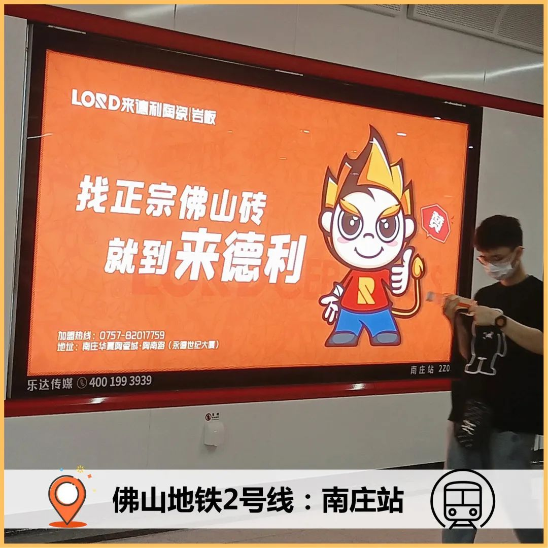 除了新媒体传播矩阵,来德利陶瓷加速品牌宣传步伐,分别在:广州南站、佛山西站、深圳北站、长沙南站高铁枢纽站点、广佛同城2号线南庄站、湖涌站多个核心站点,追加投放广告,强势霸屏各地,让数以千万的乘客感受来德利作为佛山强企的品牌魅力,实现广告效果最大化、品牌知名度提升。
