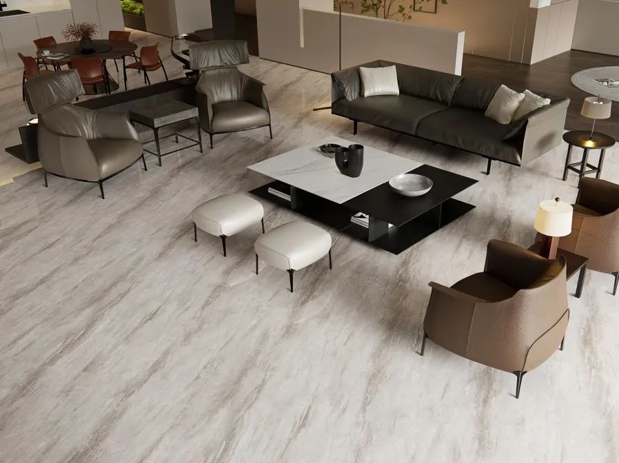 采用超耐磨干粒釉料,使表面耐磨且防滑防污性能突出,可广泛应用于各类家居、酒店、会场空间。
