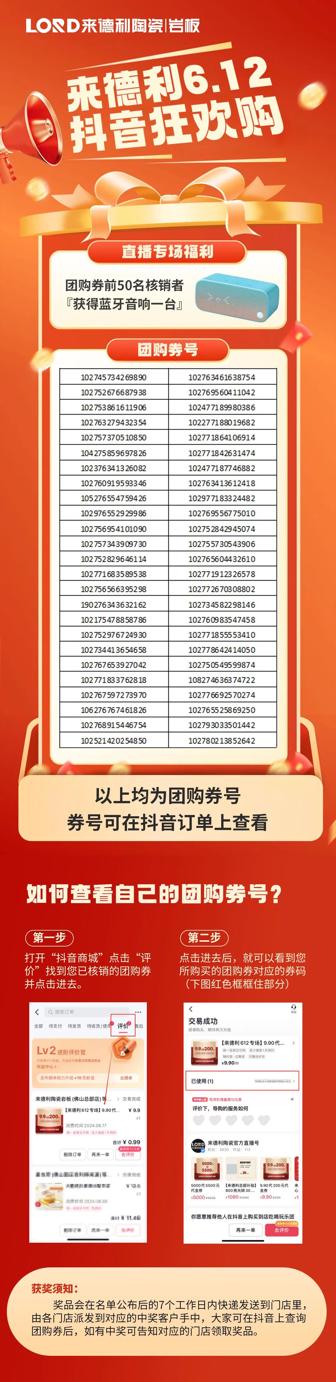专场福利 | 来德利抖音团购专场直播中奖名单公布
