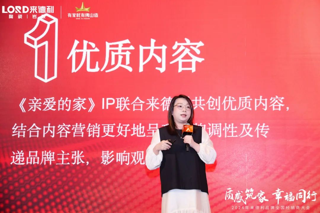 本次大会邀请到《亲爱的家》节目总策划余佳灵分析品牌如何用品质内容IP讲好家的幸福故事。根据来德利的品牌定位与节目传达的生活理念进行融合,并提出品牌与节目的内容营销方向。
