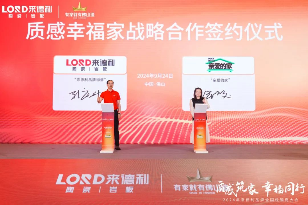 打造“幸福家”是来德利用高品质产品对消费者实现美好生活的承诺,来德利在本次大会上与《亲爱的家》栏目进行了战略合作签约仪式,怀揣着共同的愿景与使命,希望通过这档充满温情与力量的节目,为更多内心有温度、对生活充满热爱与憧憬的人精心打造温馨美好的幸福家。