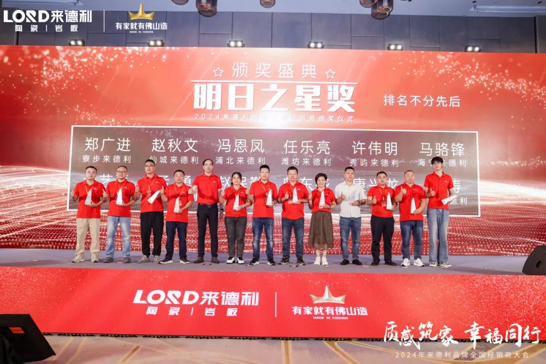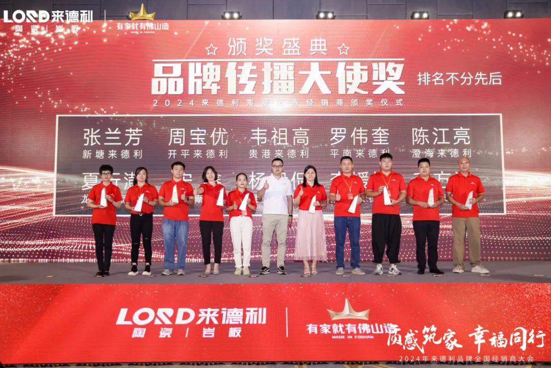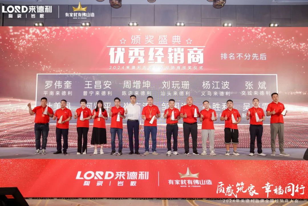 2024年9月24日,“质感筑家·幸福同行”——来德利2024年全国经销商峰会在广东佛山成功召开!集团公司领导监事会主席梁其、集团董事长梁胜远、集团战略部总经理梁浩堂、集团总经理梁浩全、集团营销总经理冼建堂、集团督导经理李朝霞、集团市场中心总经理冼桐华、集团市场中心经理颜伟生、集团设计部总监夏明星、来德利品牌总经理孔庆升、来德利品牌副经理孔庆添与来自全国各地的核心经销商齐聚一堂,共同展望来德利陶瓷未来的发展前景,共谋新篇,共同绘制蓝图,开启品牌高价值的幸福征程。