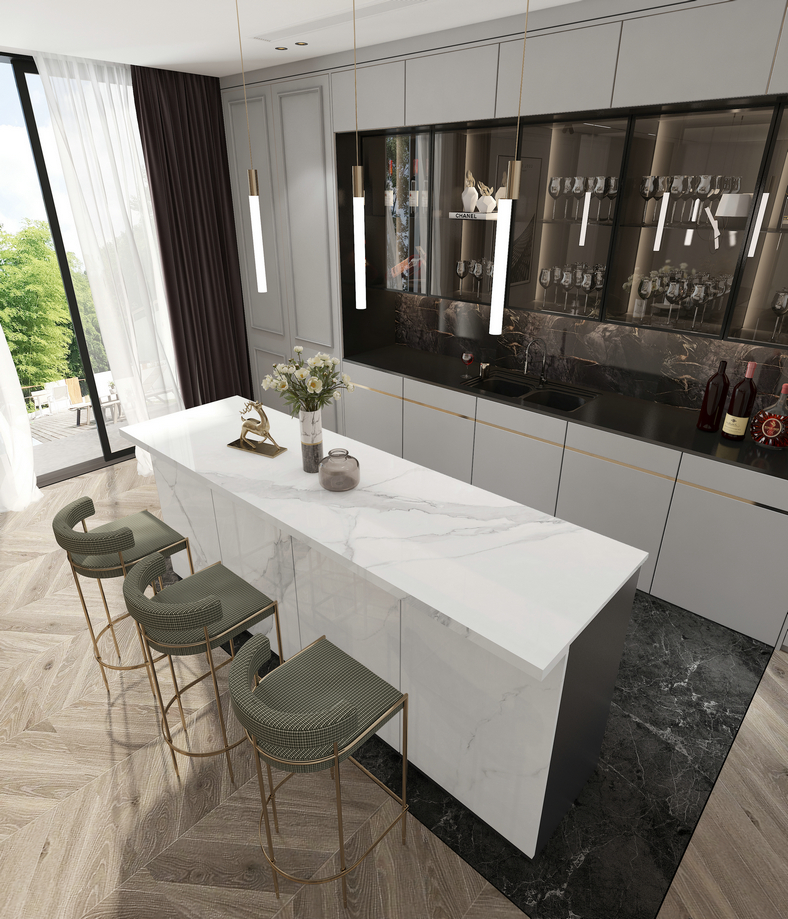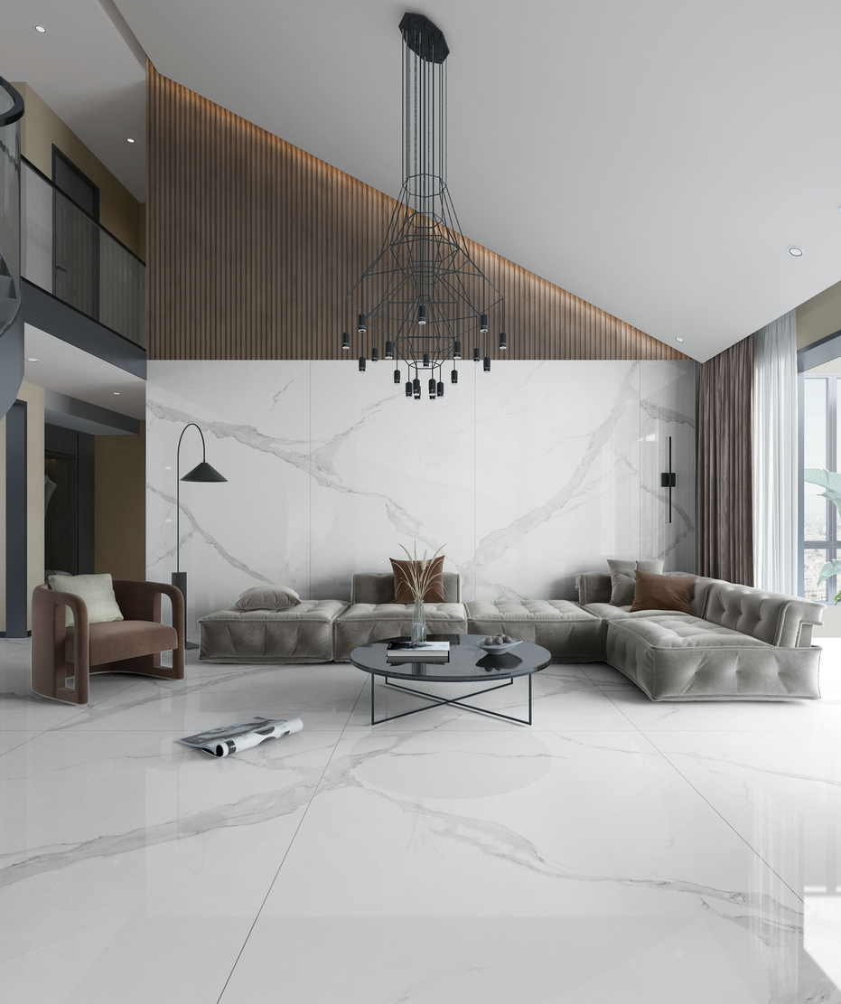 砖面硬朗的脉络纵横交错,苍劲雄浑的质感彼此凝聚,再现自然石材之无穷魅力,令人一目难忘。