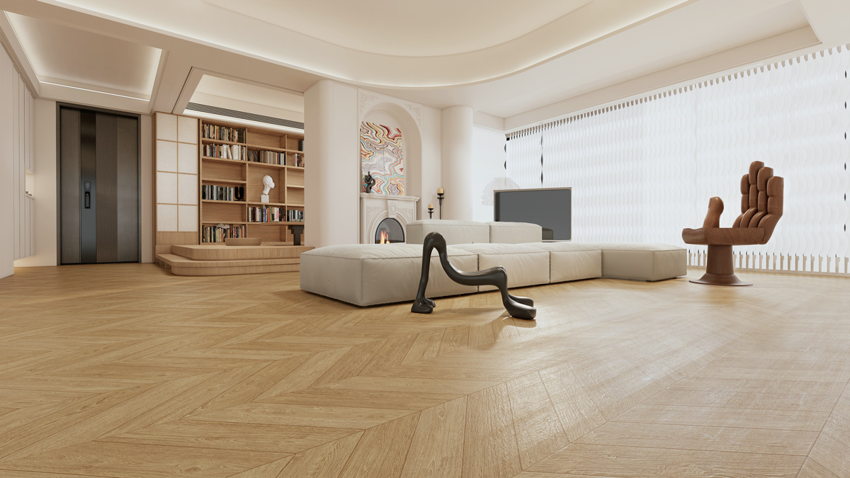 棕色调深浅交替的鱼骨纹理沉稳大气,有着岁月沉淀的高雅气息,处处透露着不俗的艺术品味。