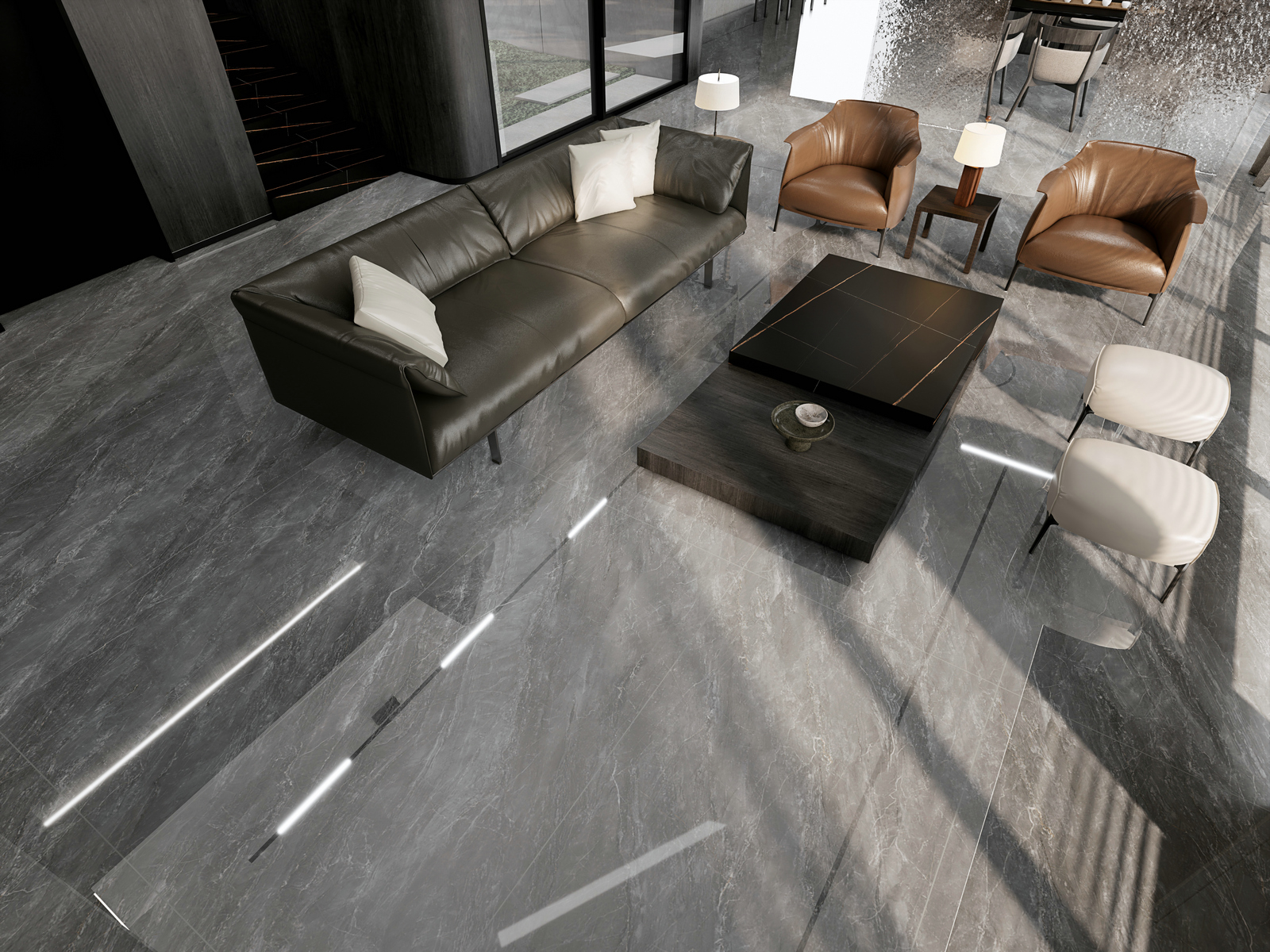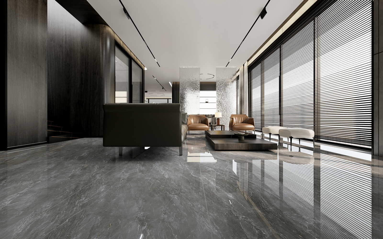 如云烟般的纹理游走于深灰的底色之上,犹如穿梭在山间的云丝,有一种朦胧的美感都能够赋予纯粹、自然的美感。让居者在安静而不浮躁的状态下体会空间的美与奢。