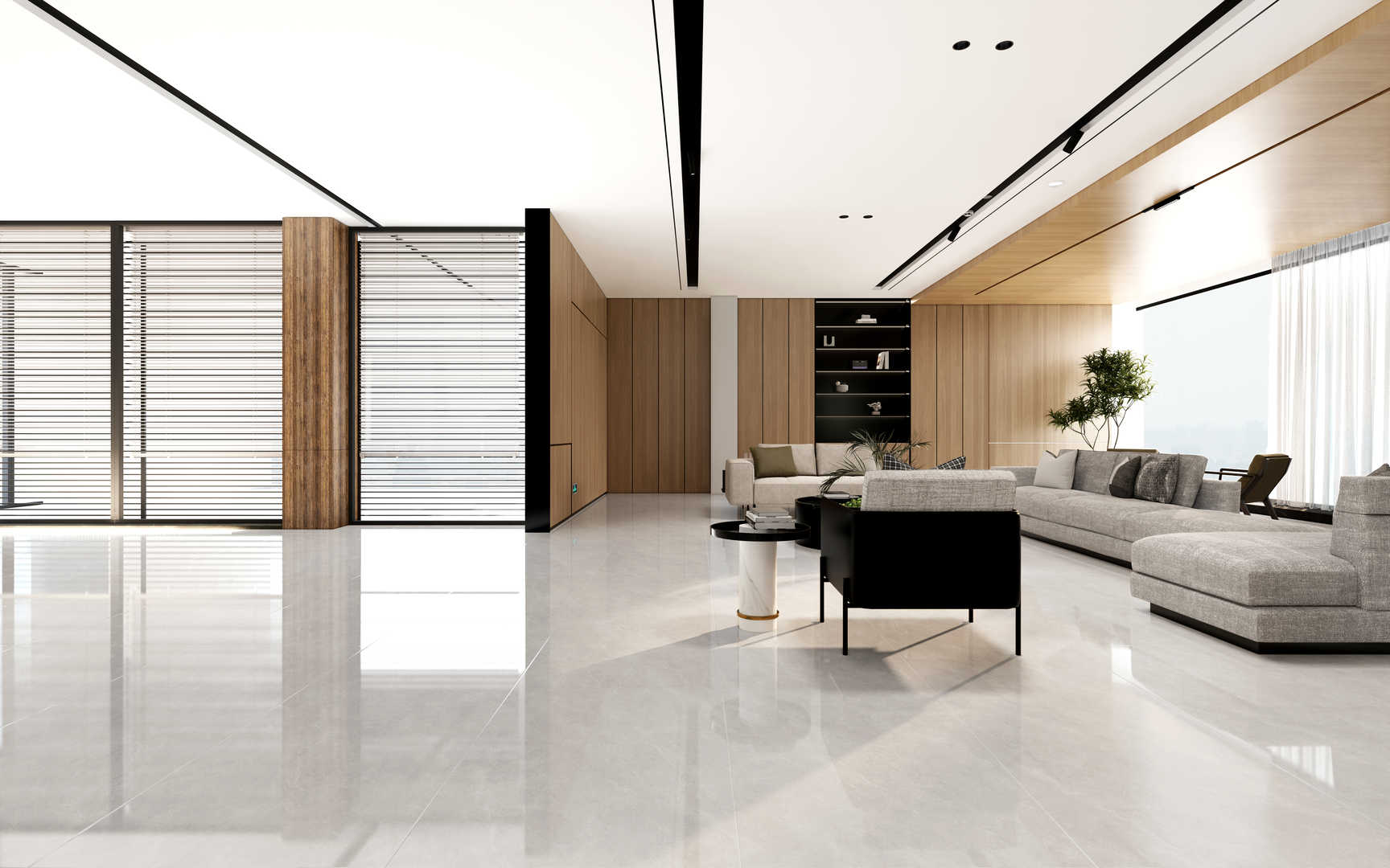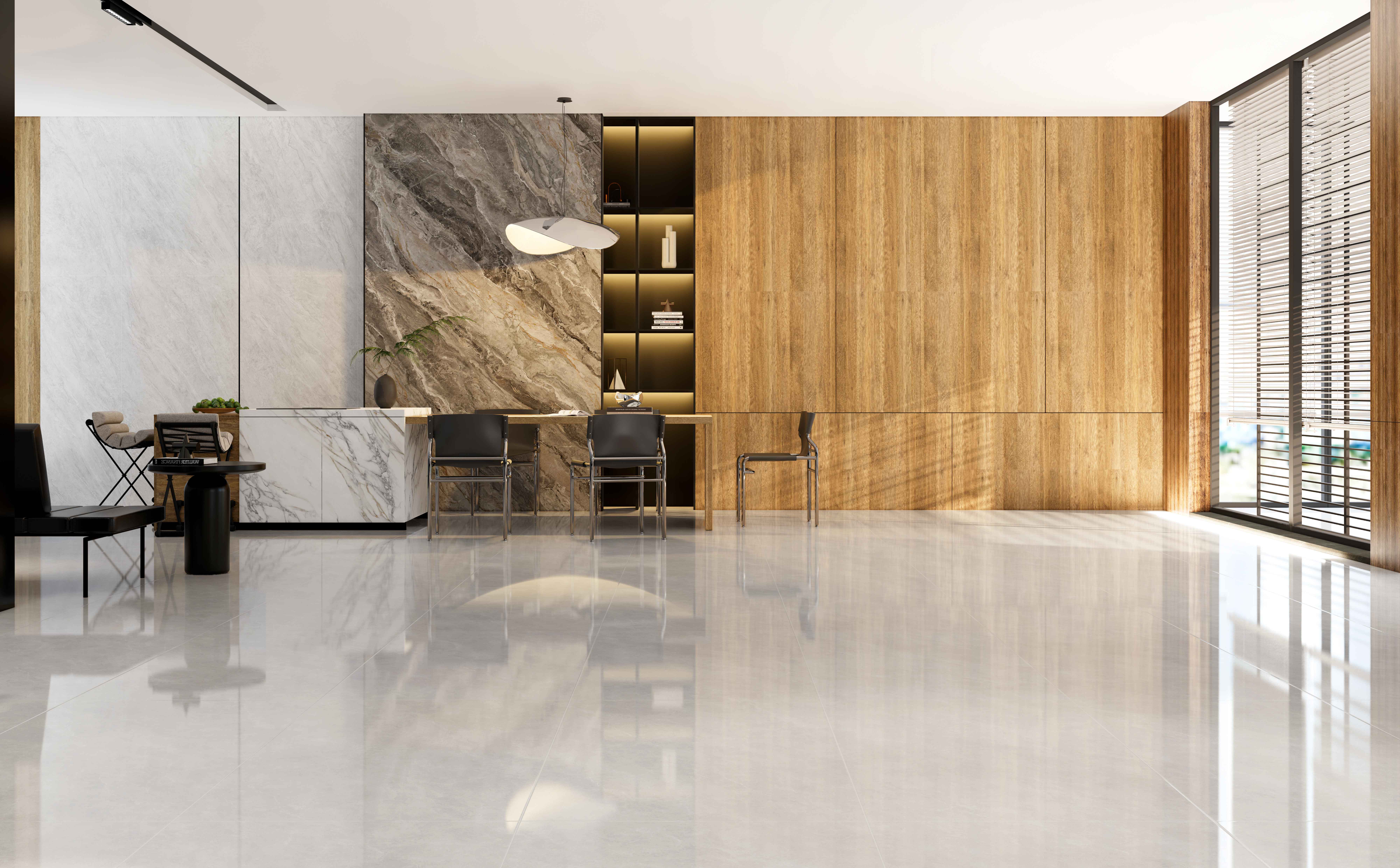 细碎的浅灰色和白色纹理相互交融,带来无止境的遐想。温和简约的灰色,衬托出空间的简单大方。细腻的触感,加上自然的光感,赋予了一种静谧清幽的和谐。