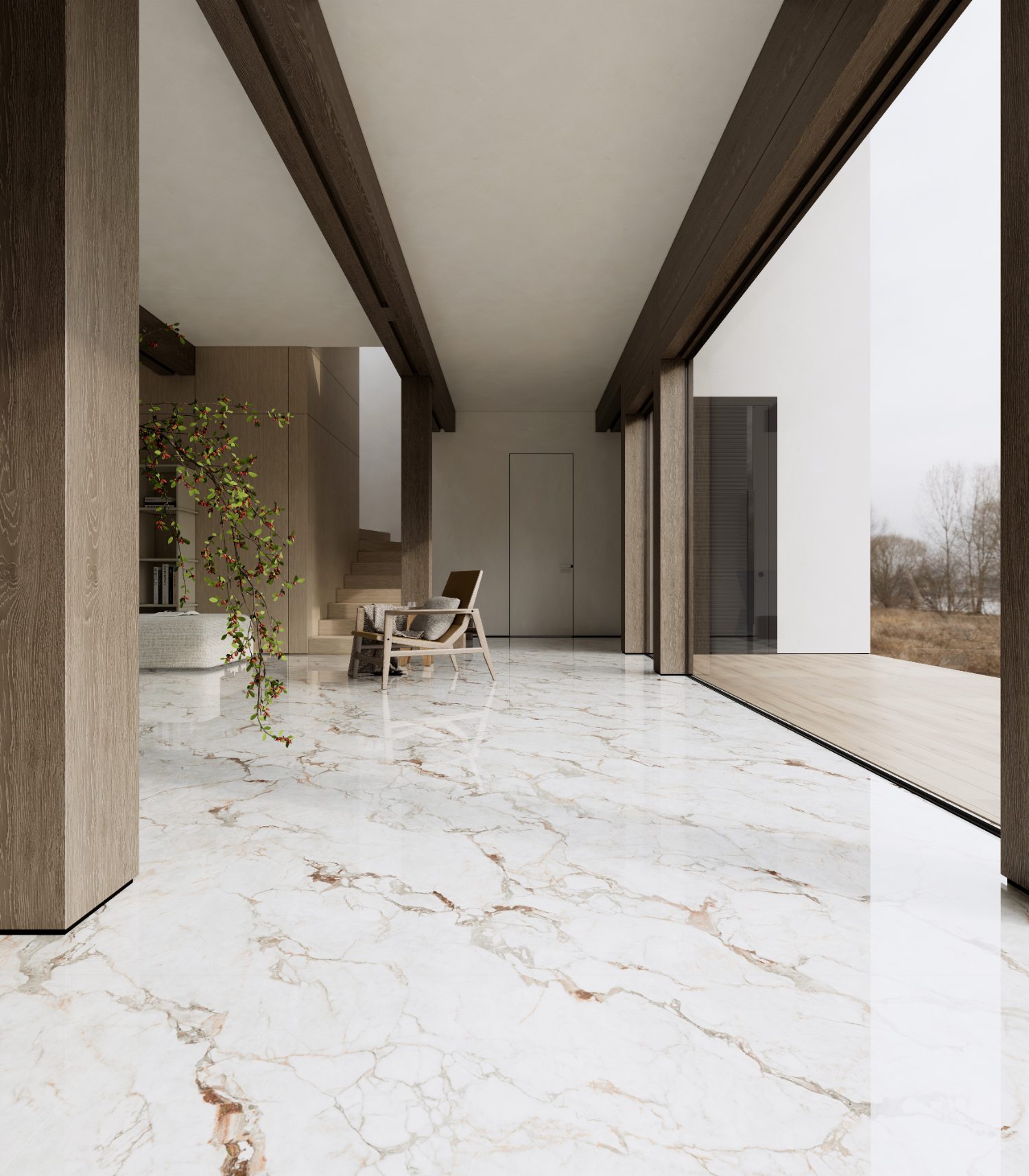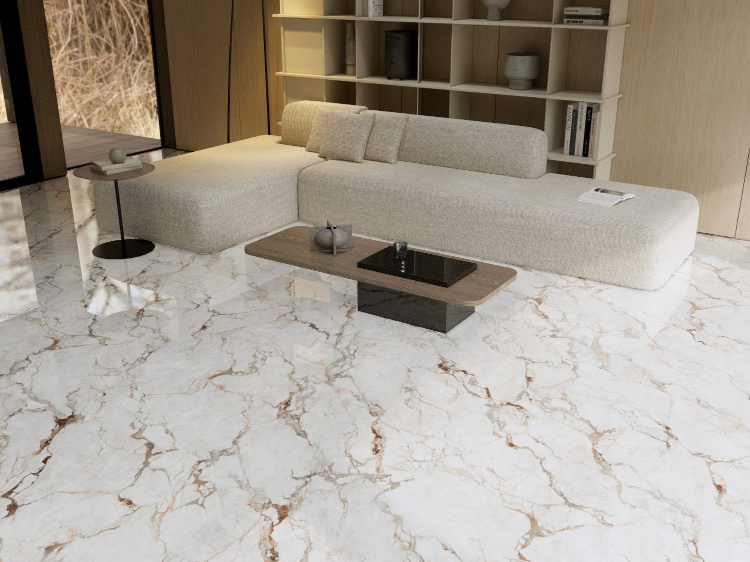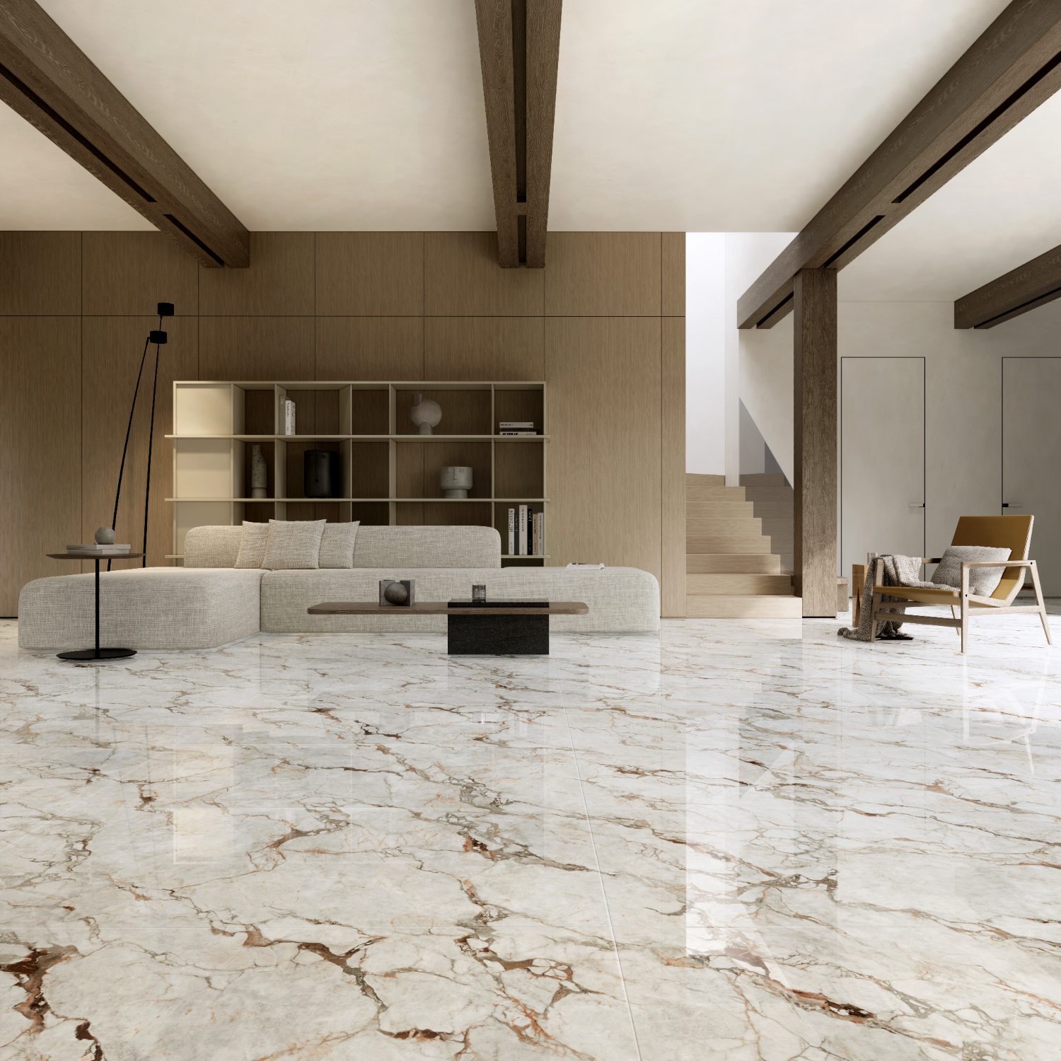以天然岩层脉络为灵感,白色基底上自然流淌的棕粉纹路如矿石凝固瞬间的液态记忆。在简洁构图中呈现岩石结晶的七彩光效果,赋予产品灵动的自然生命力